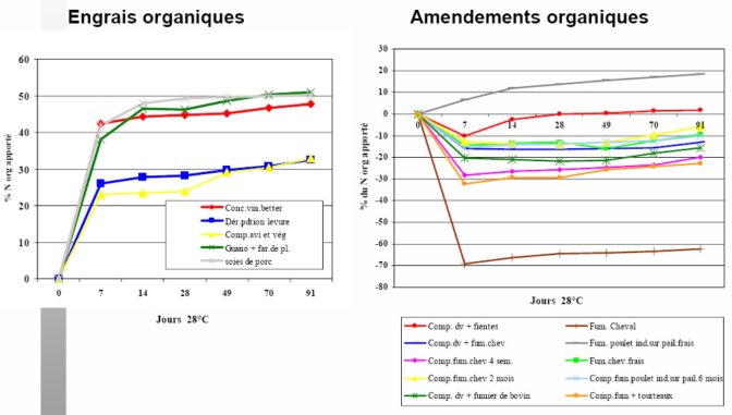 Figure 4 : % d’azote minéralisé sous 90 jours de différentes matières fertilisantes (source CREAB).