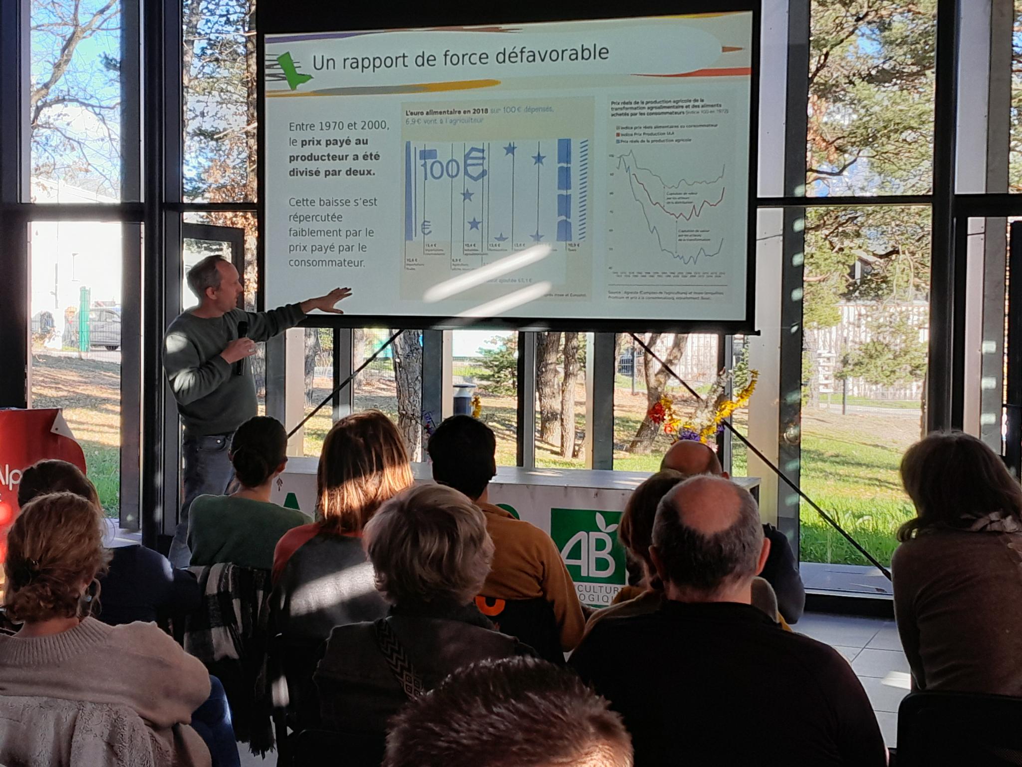 Agribio 05 avait invité François Marcadé du GR CIVAM PACA pour présenter le rapport L’injuste prix de l’alimentation : quels coûts pour la société et la planète ? .