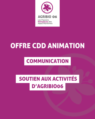 OFFRE CDD - Animateur(trice) en charge de la communication/ soutien aux activités d’Agribio06